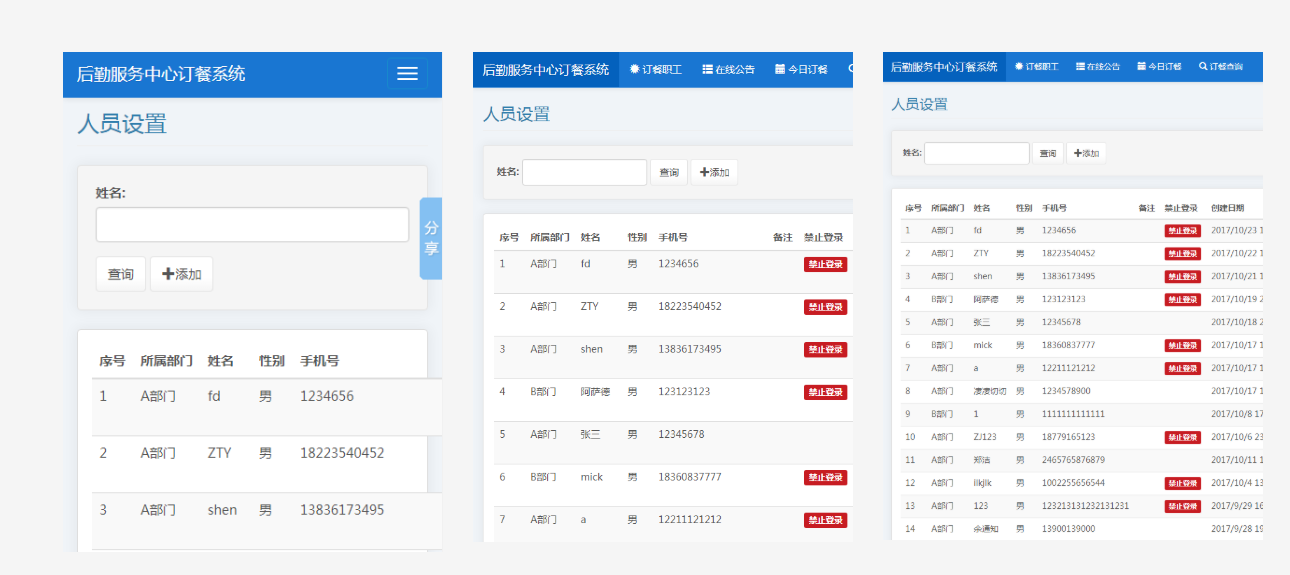 系统采用响应式布局的方式,可同时在手机、ipad、电脑上使用,方便教师随时随地的订餐。