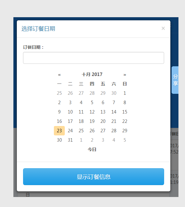 可选择订单日期来查询当天教师的早餐、中餐、晚餐